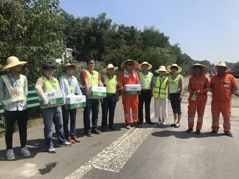 合六葉、六武高速項目業(yè)主單位、監(jiān)管單位以及監(jiān)理單位領導為高速現場施工人員送清涼
